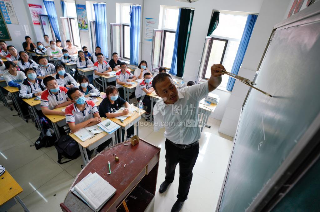 2020年9月7日,河北省黄骅市第三中学教师李福龙正在给学生上课。