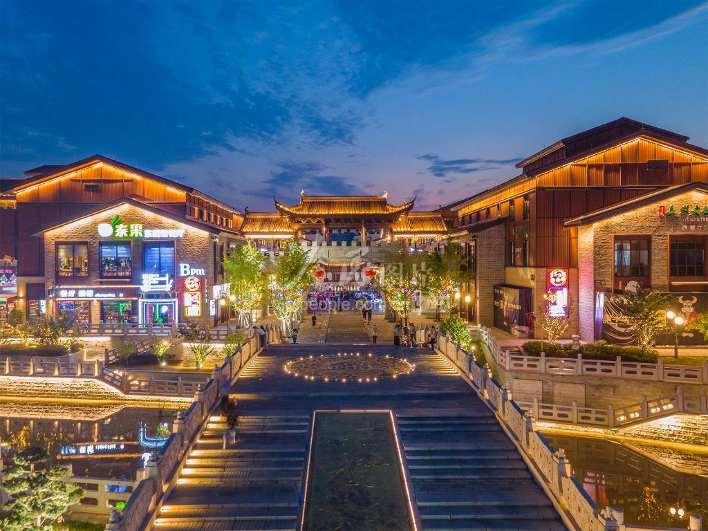 2020年9月9日晚,空中俯瞰浙江省湖州市长兴县东鱼坊历史文化街区,灯光璀璨。 长兴县获得浙江省夜间经济试点城市资格,是全省13个试点城市中的唯一县。同时,全省首批50个夜坐标中,长兴县有3个入围(龙之梦太湖古镇、东鱼坊历史文化街、水口大唐不夜街),是全省范围内入围数量最多的区县之一。