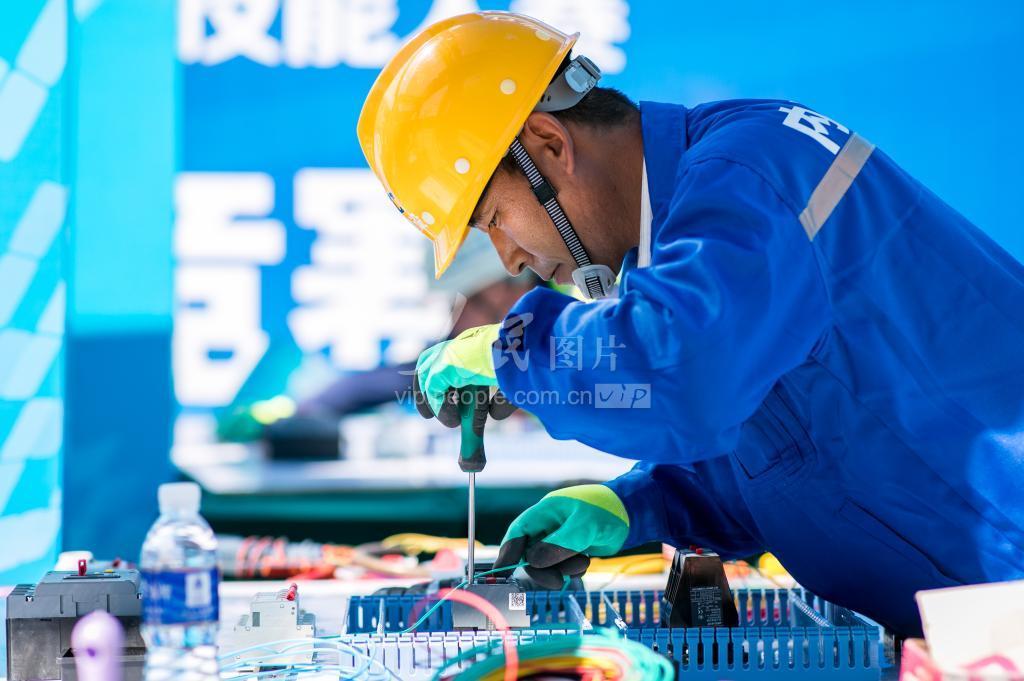 2020年9月10日,内蒙古呼和浩特市,参赛选手在电工作业比赛中。