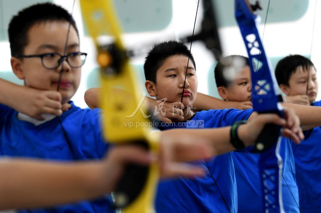 2020年9月15日,在合肥市瑶海区临泉路第二小学,孩子们在老师的指导下练习射箭技艺。据了解,为丰富孩子们的校园文化生活,2018年底,合肥市瑶海区临泉路第二小学在校园三点半课堂中设立射箭课,并成立射箭队。通过学习射箭技艺,帮助孩子提高协调性、专注力和控制力。