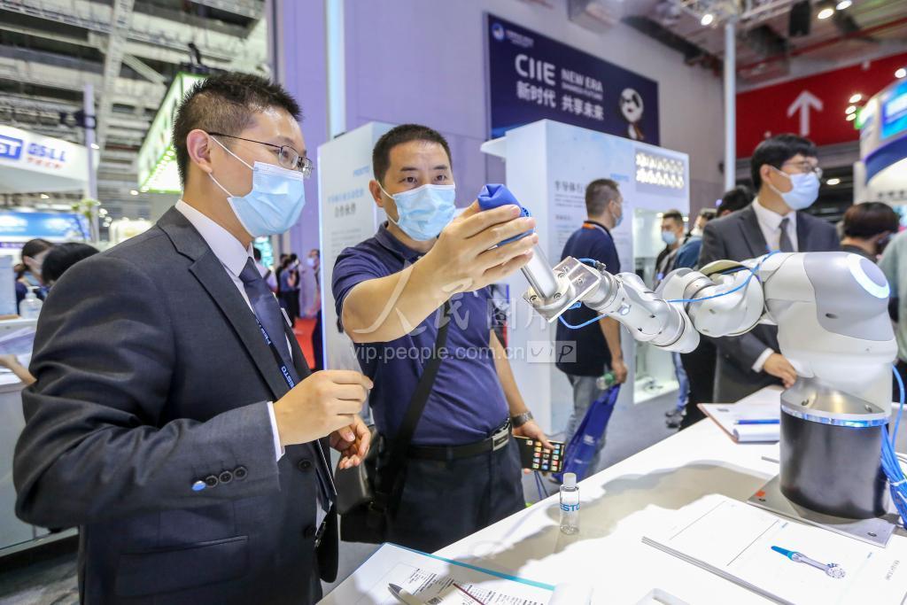2020年9月15日,上海,观众在第二十二届中国国际工业博览会体验形状自适应气爪。