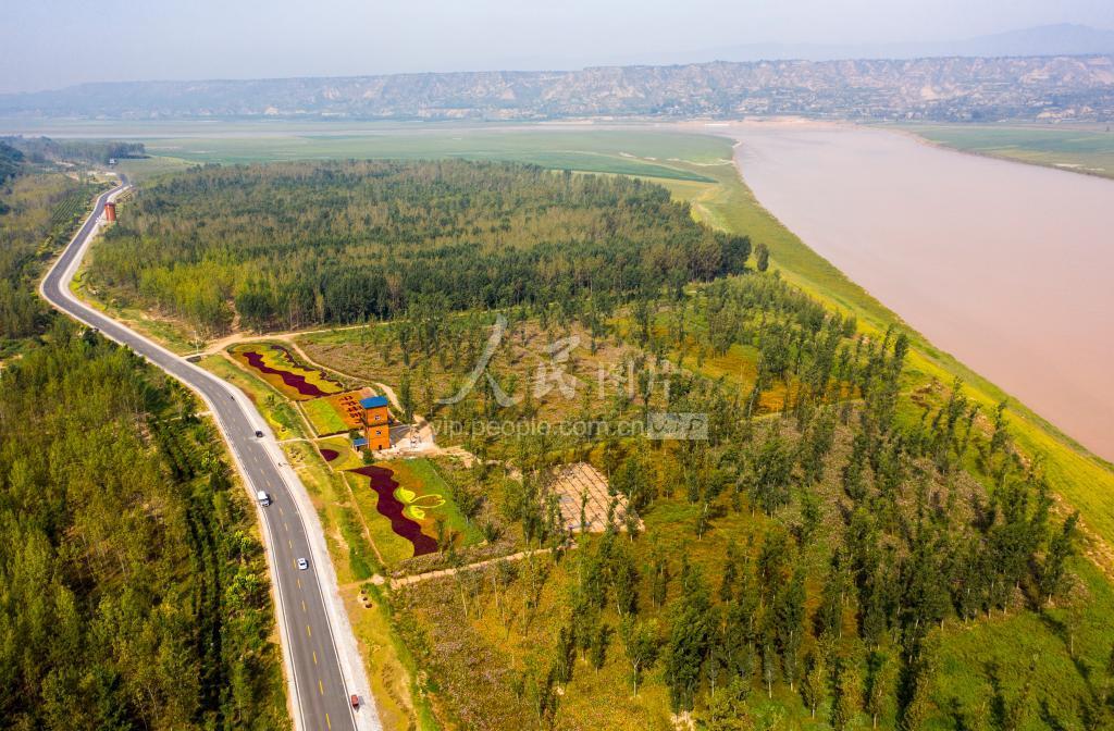 2020年9月16日,河南三门峡市,金秋时节,俯瞰黄河三门峡段百里黄河生态廊道美景如画。黄河在河南省三门峡市境内流经206公里。当地对黄河沿岸(三门峡段)进行了统一规划,实施生态修复、水系治理、公共服务设施和市政基础设施建设等工程,极大改善沿黄生态环境,筑牢沿黄生态安全屏障。如今,黄河生态廊道美景如画,成为市民观光旅游的好去处。