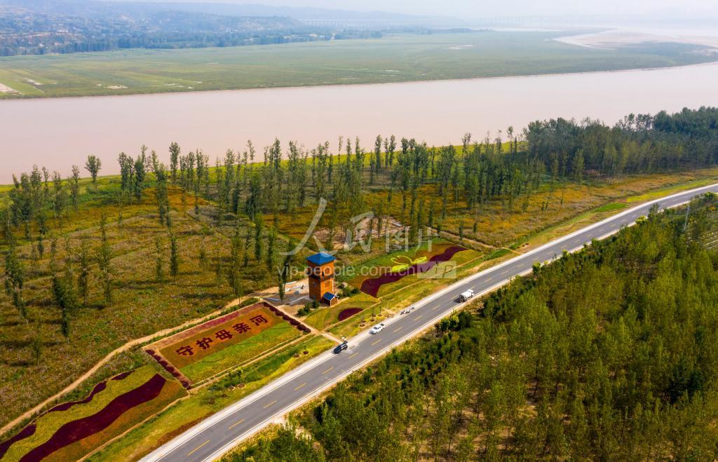 2020年9月16日,河南三门峡市,金秋时节,俯瞰黄河三门峡段百里黄河生态廊道美景如画。黄河在河南省三门峡市境内流经206公里。当地对黄河沿岸(三门峡段)进行了统一规划,实施生态修复、水系治理、公共服务设施和市政基础设施建设等工程,极大改善沿黄生态环境,筑牢沿黄生态安全屏障。如今,黄河生态廊道美景如画,成为市民观光旅游的好去处。