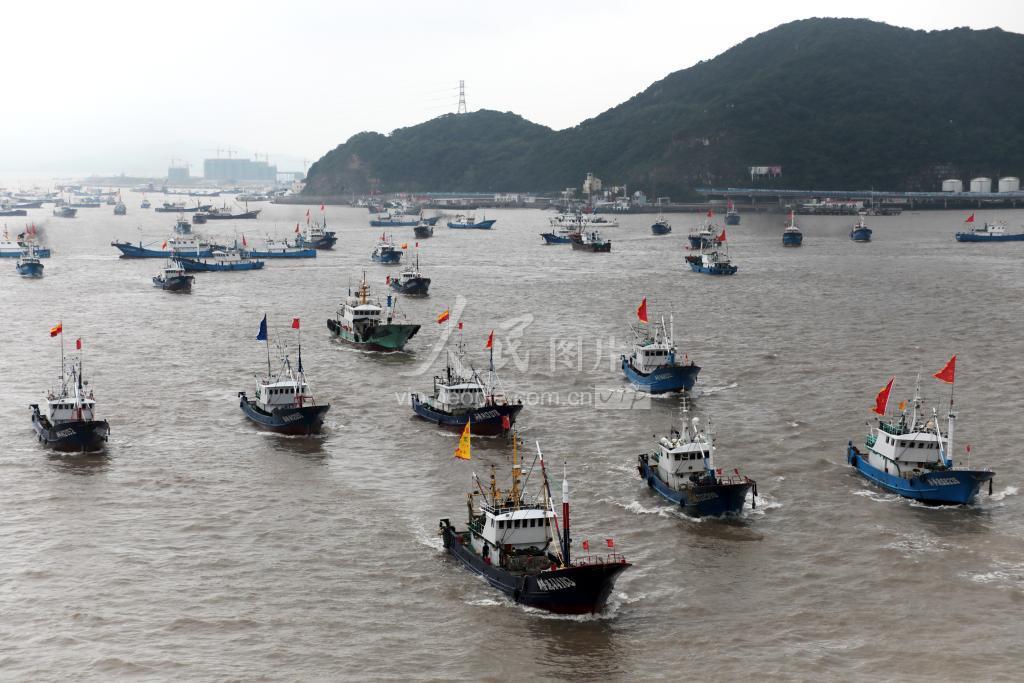 2020年9月16日中午,东海伏季休渔结束,全面解禁,舟山市1680余艘拖网、帆张网等作业渔船浩浩荡荡驶过朱家尖跨海大桥,乘风破浪向渔场。