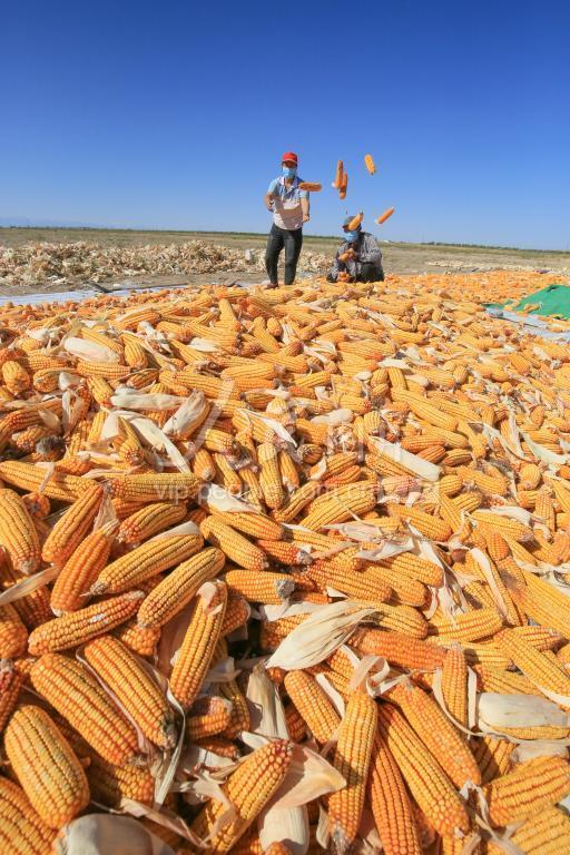 2020年9月16日,新疆昌吉回族自治州呼图壁县二十里店镇宁州户村,农民在晾晒玉米。眼下,正值当地玉米秋收时节,农民忙着抢收晾晒,一派繁忙景象。