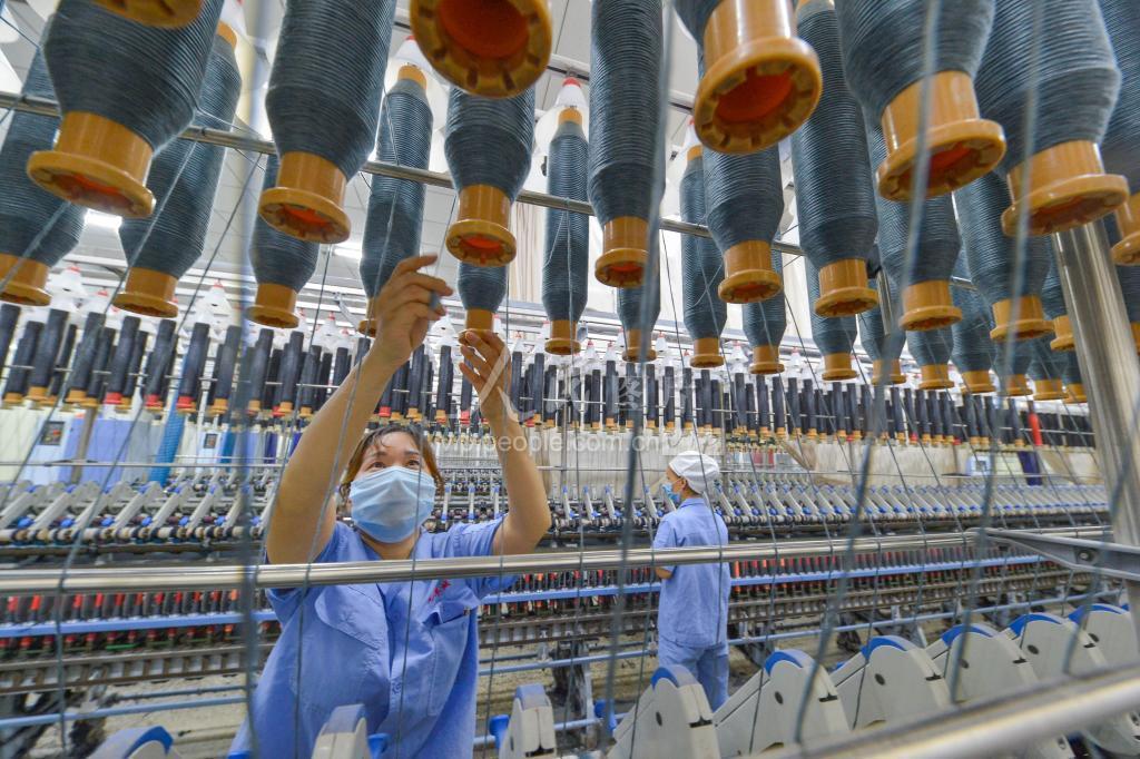 2020年9月17日,工人在河北省邯郸市肥乡区一家纺织服装企业车间工作。