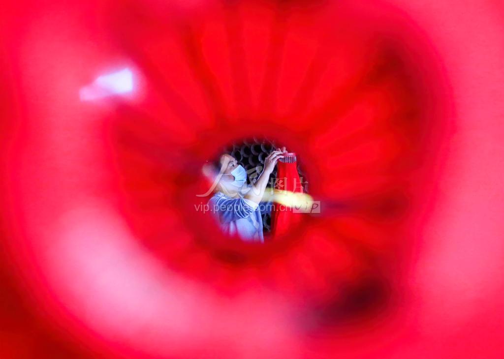 2020年9月27日,山西省运城市稷山县杨赵村灯笼产业园区内,工人们正在加班加点赶制红灯笼迎国庆。 随着国庆节来临,稷山县杨赵村灯笼产业园区一派繁忙景象,工人们加紧赶制大红灯笼,据村民马长江讲,他家灯笼厂今年将制作30余万对红灯笼,销往全国各地,预计可增收三十余万元。