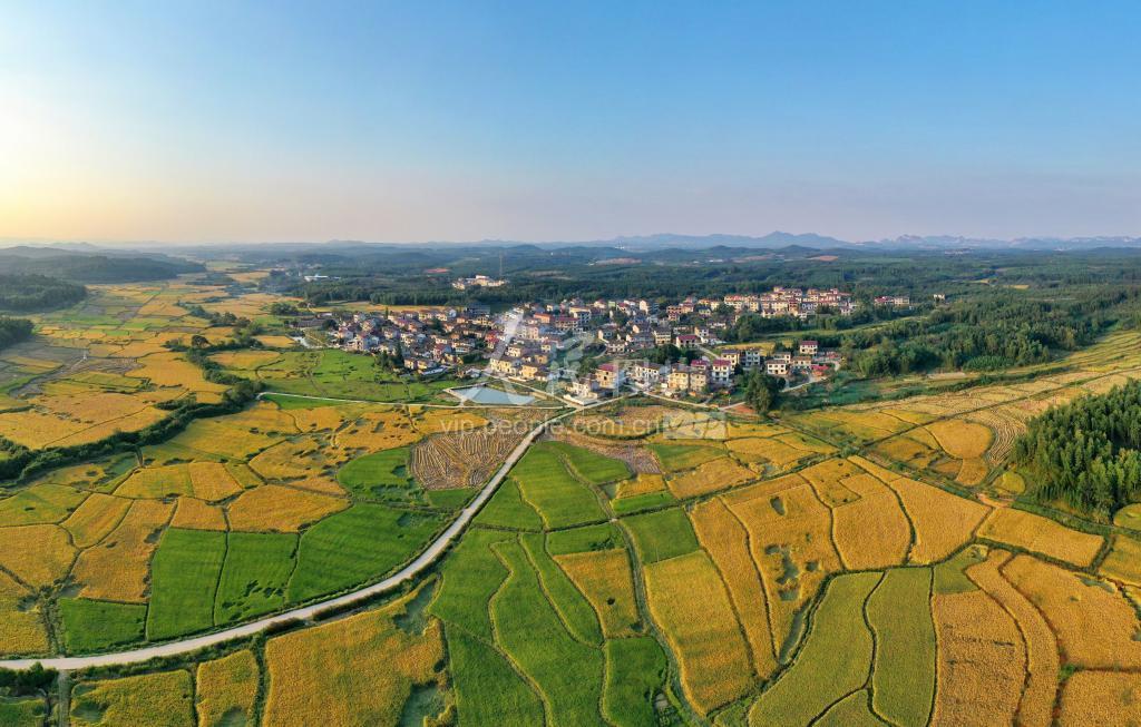 2020年10月10日,无人机航拍下的江西省抚州市金溪县对桥镇横源村一带,青山、稻田、民居等构成一幅美不胜收的多彩乡村画卷。 近年来,金溪县加快推进高标准农田建设、水利工程建设、农村公路建设等农村基础设施建设,既改善了农村人居环境,推动了美丽乡村建设,又促进了乡村旅游蓬勃发展。