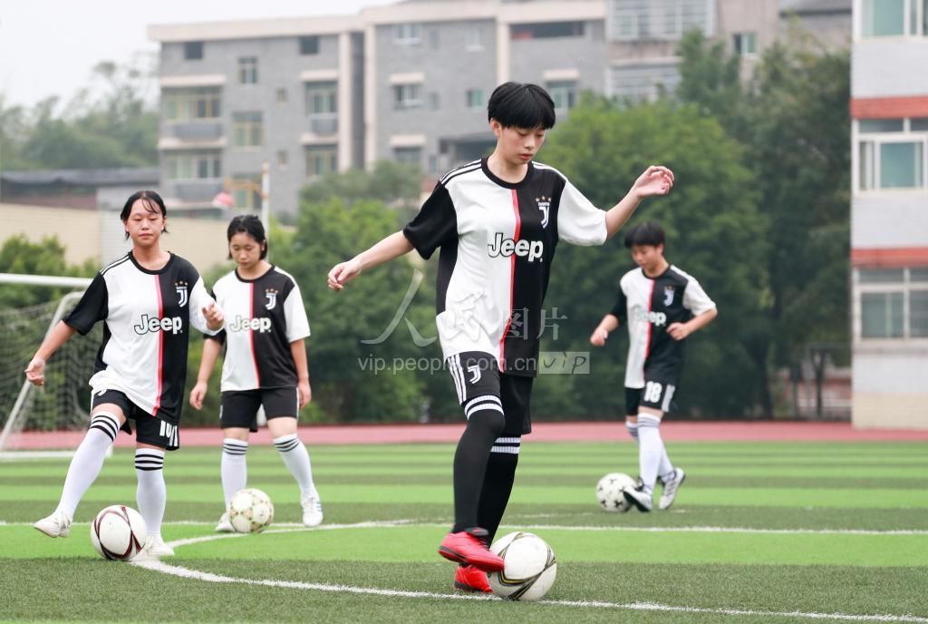 2020年10月13日,四川省校园足球示范学校华蓥一中的女子足球队在绿茵场上进行训练,为参加11月举行的广安市校园足球总决赛做准备。 据悉,四川省华蓥一中积极推行“阳光体育、快乐足球”理念,将“团结协作、顽强拼搏、快乐足球”的足球文化融入到校园文化建设中,专门成立了有34名女学生参加的校级女子足球队,并利用校园广播、宣传栏等形式宣传普及足球知识,全校38个教学班均建立了足球队,每班每周开设一节足球课,常态化举办校园足球比赛等活动,让学生们享受足球带来的快乐,提高身体素质和运动技能。