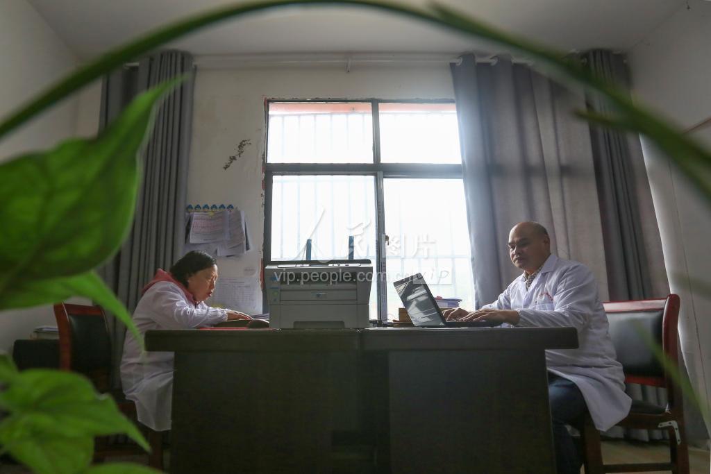 10月13日,杨庆国(右)和妻子尹贵先在位于贵州省毕节市七星关区长春堡镇清丰社区的毕节市盲人技能培训学校校长在办公室备课。
