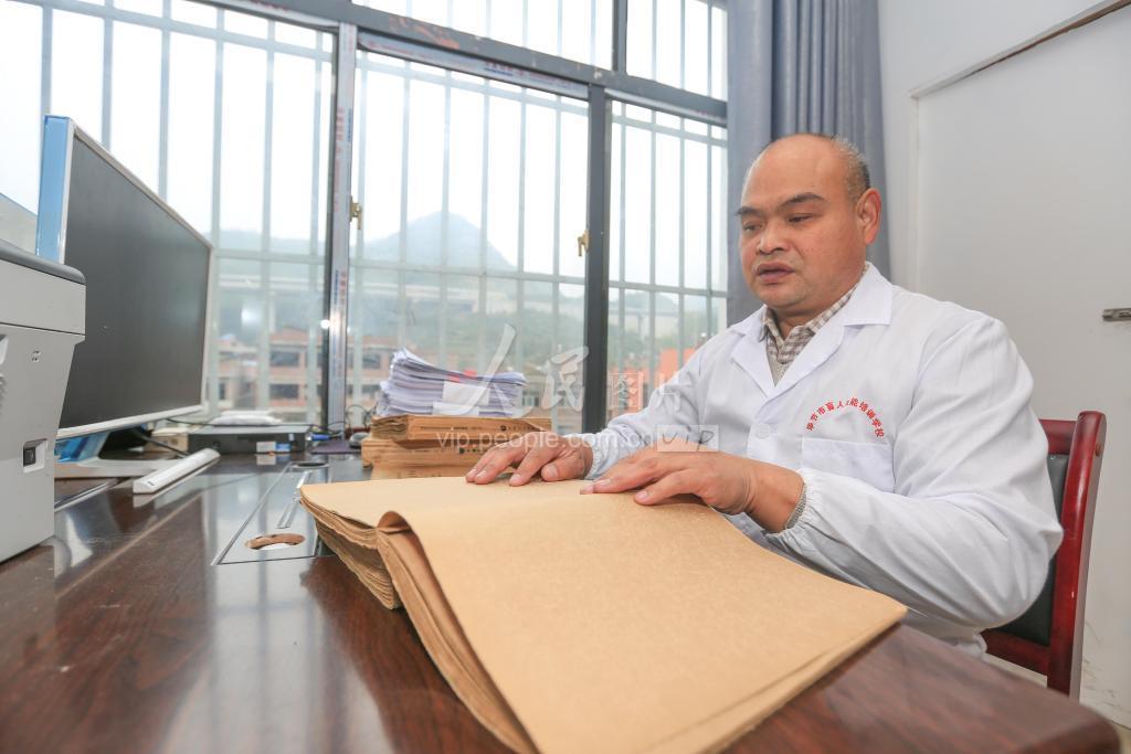 10月13日,杨庆国在位于贵州省毕节市七星关区长春堡镇清丰社区的毕节市盲人技能培训学校办公室备课。