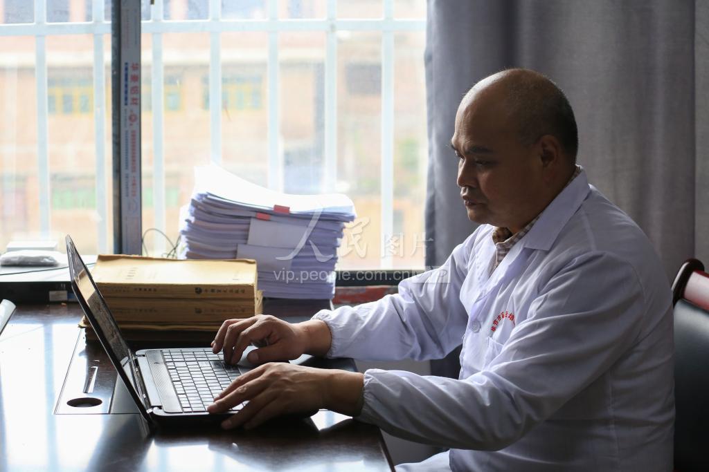 10月13日,杨庆国在位于贵州省毕节市七星关区长春堡镇清丰社区的毕节市盲人技能培训学校办公室备课。