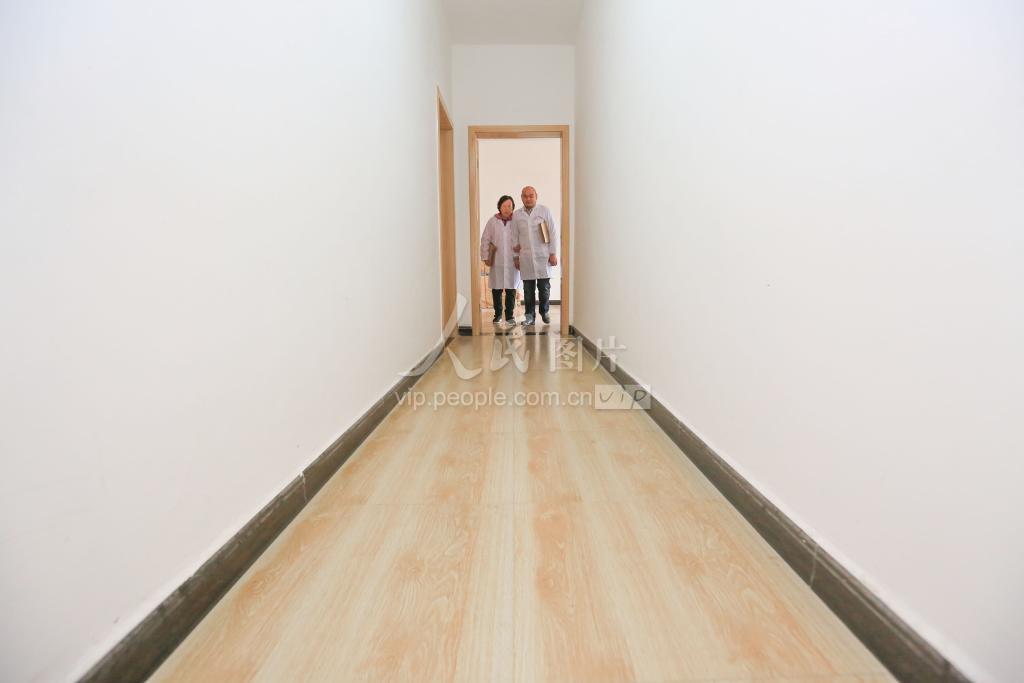 10月13日,在位于贵州省毕节市七星关区长春堡镇清丰社区的毕节市盲人技能培训学校,杨庆国(右)和妻子尹贵先前往教室途中。