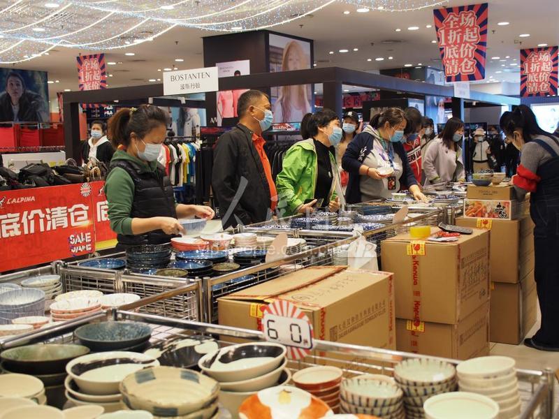 2020年10月14日,北京王府井东安市场,顾客抓紧抢购商品。