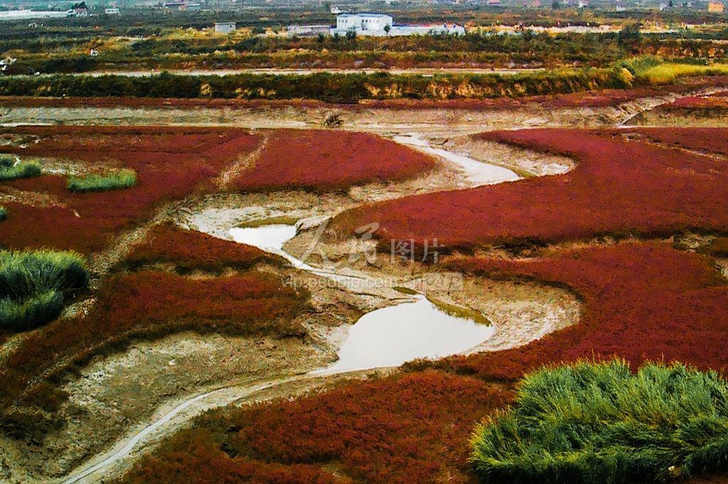 深秋时节,山东省青岛市胶州湾河流入海口的碱蓬草渐渐由红变紫,梦幻般的色彩绘就一幅自然生态奇观。