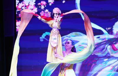 2020年10月16日,在江苏省如皋市,演员在表演如皋杖头木偶戏。