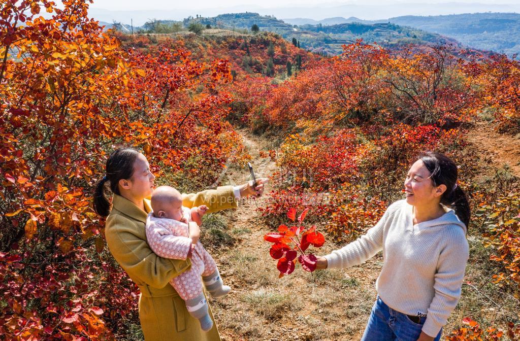 金秋时节,位于山西省平陆县马泉沟景区的红叶进入最佳观赏期,吸引游客前来休闲观光。
