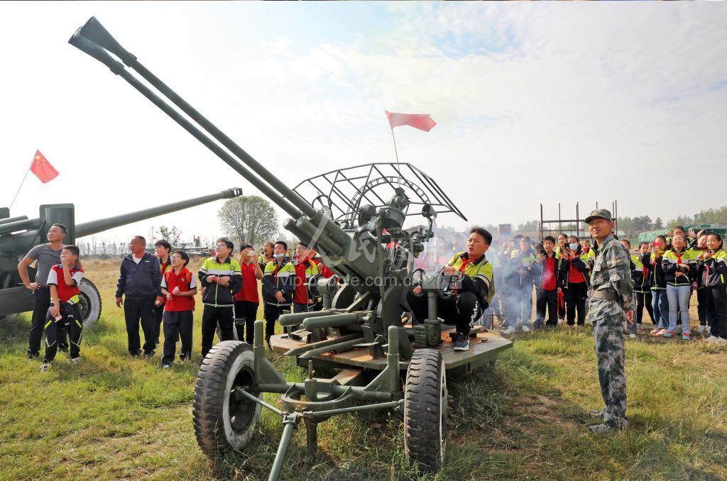 2020年10月17日,安徽省淮北市古城路小学的学生们在国防科技园内参观体验国防武器装备。当日,古城路小学的学生们在教官和老师的带领下,走进濉溪县百善镇柳孜文化园内的国防科技园进行研学活动,零距离接受国防教育。学生们在教官的指导和看护下分别进行了武器装备的体验,通过学习国防知识,强化青少年的国防意识,激发他们关心、支持、参与国防建设的热情。