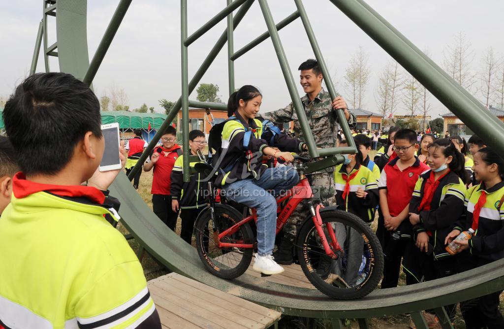 2020年10月17日,安徽省淮北市古城路小学的学生们在国防科技园内参观体验国防武器装备。当日,古城路小学的学生们在教官和老师的带领下,走进濉溪县百善镇柳孜文化园内的国防科技园进行研学活动,零距离接受国防教育。学生们在教官的指导和看护下分别进行了武器装备的体验,通过学习国防知识,强化青少年的国防意识,激发他们关心、支持、参与国防建设的热情。