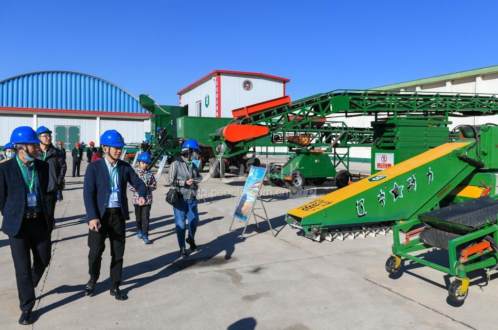 2020年10月18日,市民在中央储备粮呼和浩特直属库参观机械设备。