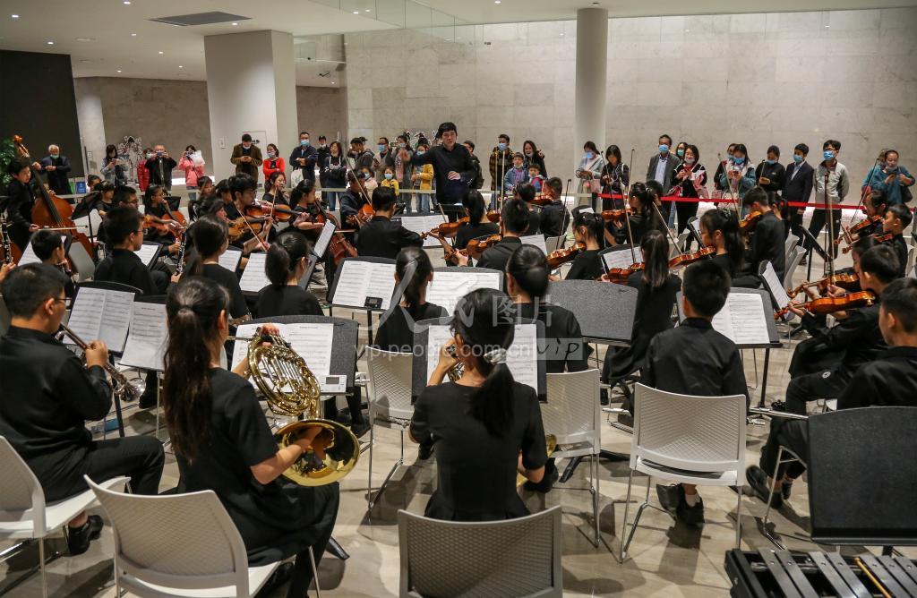 2020年10月18日晚,苏州吴中博物馆对市民开放夜间参观,现场乐队在演奏。