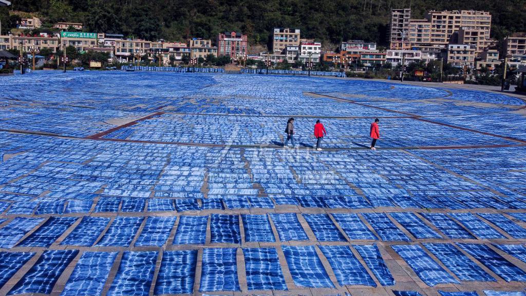 2020年10月22日,贵州省册亨县中华布依锦绣坊,易地扶贫搬迁妇女利用晴好天气晾晒扎染围巾。 贵州省册亨县依托布依族民族文化资源优势,把民族民间技艺变为搬迁群众自力更生的民族产业,建设21个特色锦绣坊吸纳搬迁妇女。组织绣娘参与国内、国际商业、文化、艺术等领域交流提升技艺;积极与各民族学校、主题酒店和公司企业对接,实现刺绣产品的“农校对接”“农店对接”直供直销,抓订单延长产业链。让“针线活”成为“致富宝”,解决易地扶贫搬迁妇女的就业问题,在增加搬迁群众收入的同时,确保搬迁群众“稳得住、能致富”。