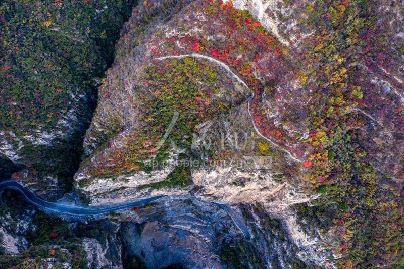 金秋时节,山西省长治市平顺县石城镇岳家寨村秋色正浓,树上的秋叶、村中的石板路、石板房等构成了如画的秋景,吸引众多游客前来观赏旅游。