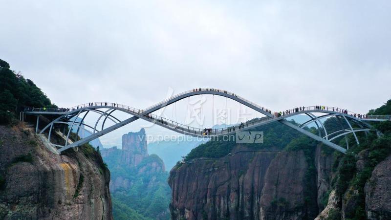 2020年10月17日,众多游客在浙江省台州市仙居县神仙居景区“如意桥”上拍照、游玩。