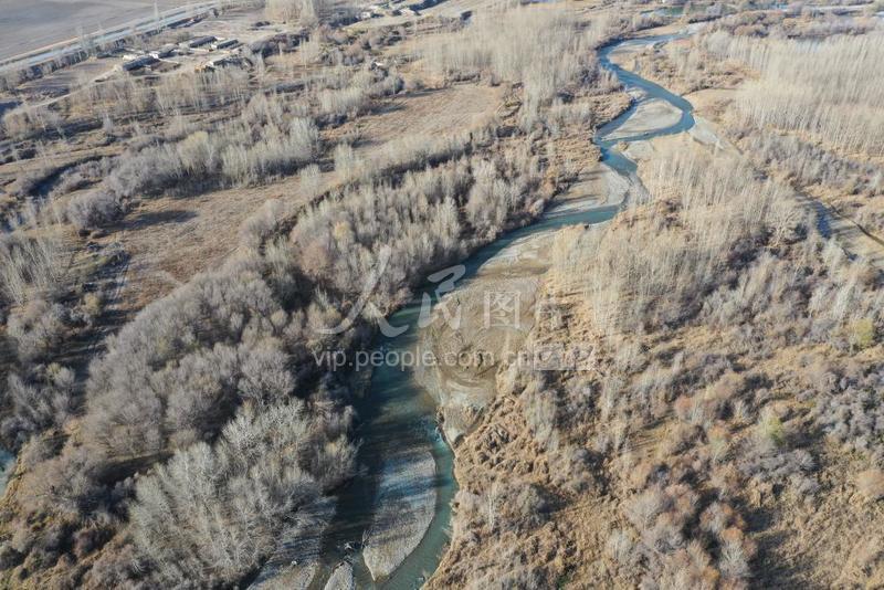 11月3日,无人机拍摄新疆博尔塔拉蒙古自治州境内博尔塔拉河汇河地段景色。汇河是指博尔塔拉河与鄂托克赛尔河交汇的地方。鄂托克赛尔河是博尔塔拉河上游的支流,也是最大的水源补充源,两条河流的发源地,分别在别珍套山之南北,地处中哈边境。汇河是两河交汇的地,泉眼众多,水资源丰富,时值入冬前,河谷内的树上的叶片已经凋零,深秋的景致虽然骨干,仍蕴育着新的希望,来年,定会生机盎然。