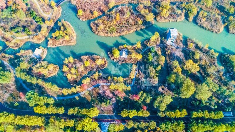 深秋时节,安徽省淮北市烈山区南湖湿地公园进入色彩缤纷的最美季节,多彩秋叶把美丽公园装扮的如诗如画,让游人恍如置身在秋天的童话里。