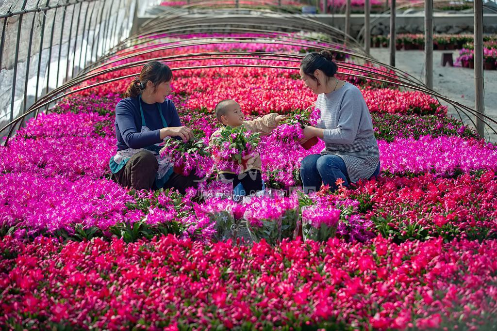 浙江省杭州市淳安县石林镇依托生态优势根据各村实际发展特色产业,带动当地群众增收致富。近期,石林镇玳瑁村花卉基地的仙客来、蟹爪兰等花卉长势喜人、含苞待放,村民们忙着在做好花期培管,为即将到来销售旺季做准备。