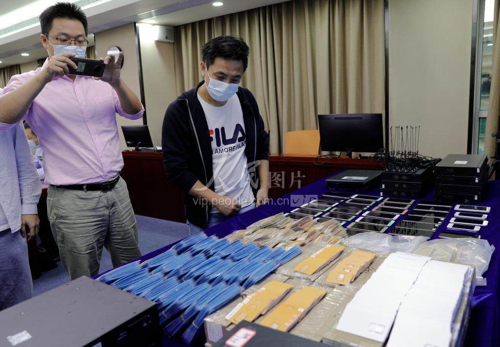 警方展示“断卡”行动缴获的涉案工具和物品。