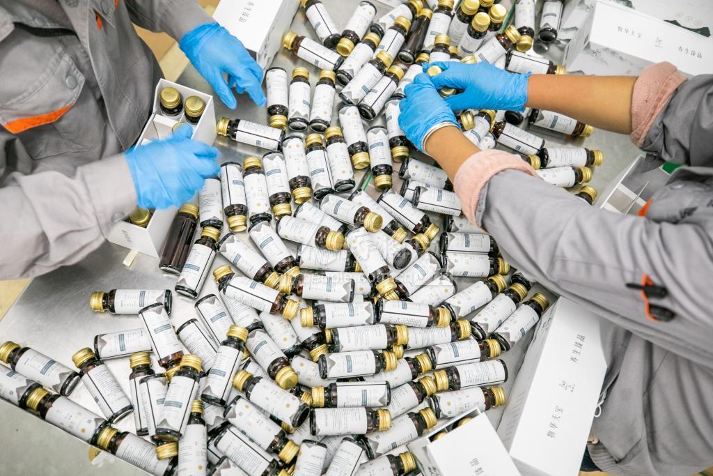 11月13日,工人在贵州省毕节市七星关区经济开发区奇田原生态刺梨原液生产线上包装刺梨产品。