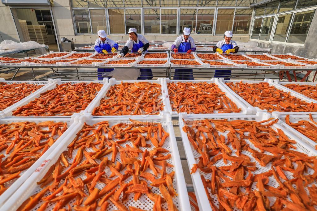 连日来,在山东荣成埠柳镇紫藤苑现代农业中心,工人们正进行地瓜干蒸制、晾晒工作,一排排金黄的地瓜干铺出了农业发展的致富路。 近年来,埠柳镇深挖农业资源潜力,探索产业发展特色,建立“龙头企业+合作社+农户”的模式,以紫藤苑现代农业中心带动周边农村流转一千多亩土地进行甘薯规模化种植,实现甘薯种、产、销一体结合,解决了农村土地种植收益低、农闲时剩余劳动力过剩的问题,同时搭建电子商务平台,多种渠道促进农业增收。在紫藤苑现代农业中心附近的梁南庄村,近两年围绕地瓜产业,集体经济乘势发展,走出了一条乡村生态资源与特色产业开发融合发展的路子。村民通过电商平台销售地瓜原料及地瓜干,年可销售地瓜100万公斤以上,平均每公斤地瓜干可增加利润2元左右,累计带动村集体经济增收19万元。