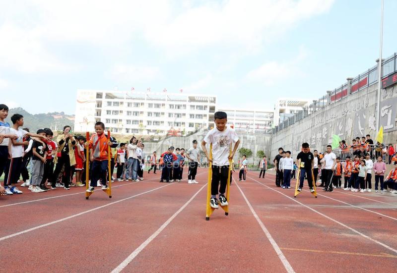 2020年11月18日,广西三江侗族自治县易地扶贫搬迁安置点古宜镇南站社区江川小学举办第二届民族运动会,全校1600多名师生参加背篓抛绣球、马骑脚、跳绳、滚铁环等民族传统体育运动项目。 江川小学是三江侗族自治县易地扶贫搬迁古宜镇南站社区配套项目之一,同时也是广东吴川市对口三江援建的脱贫攻坚重点项目,项目总投资达1.24亿元。目前全校有36个班1600多名易地扶贫搬迁学生就读,有效解决了搬迁群众子女的教育难题。