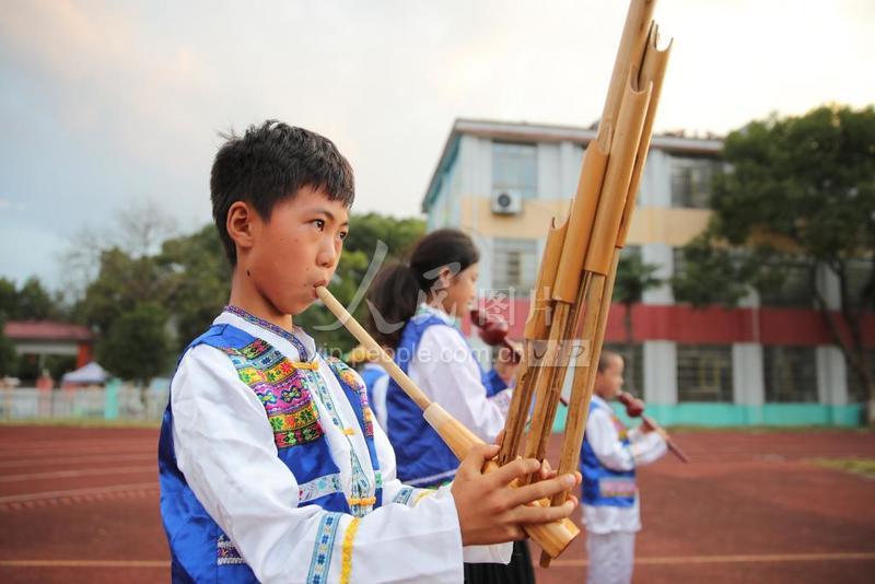 2020年11月19日,江西省吉安市峡江县金坪民族乡中心小学的学生在练习吹竹笙。