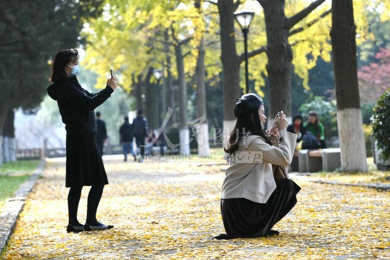 上传时间: 2020-11-20 16:28:44 图片说明: 2020年11月20日,人们在南京玄武湖公园观赏银杏。