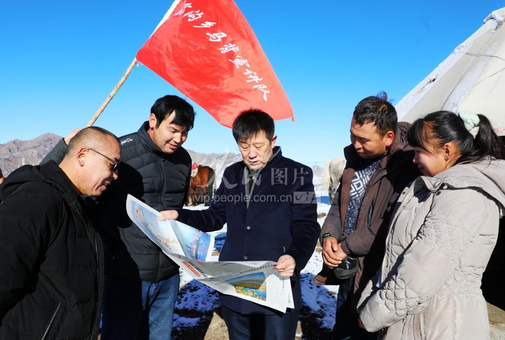 2020年11月20日,昌吉市庙尔沟乡“马背宣讲队”成员正在山区为牧民宣讲。