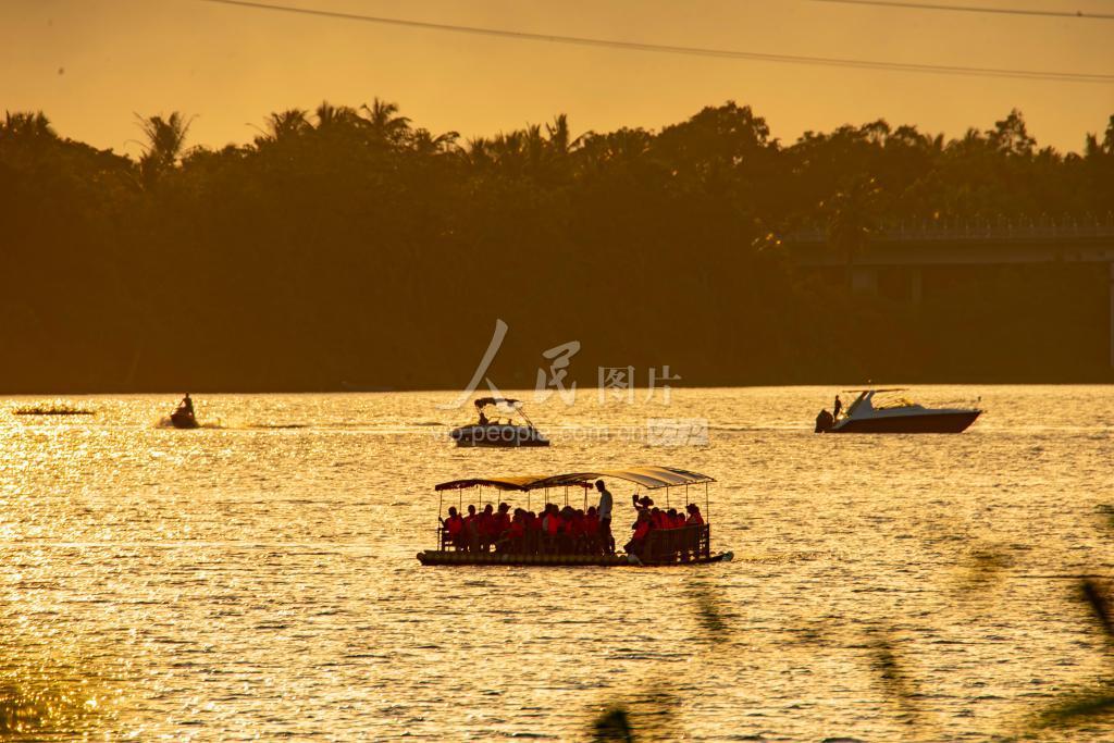 上传时间: 2020-11-21 21:21:03 图片说明: 2020年11月21日,海南琼海,游人乘游艇在夕阳下的琼海万泉河上畅游。