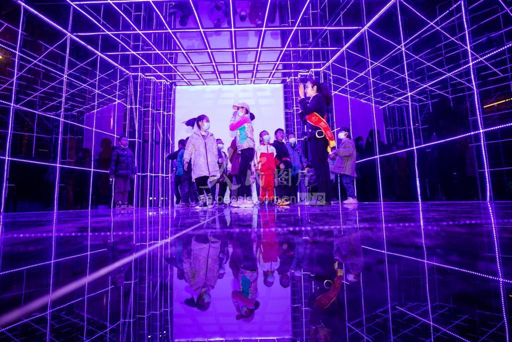 2020年11月21日,在贵州省毕节市科技馆,小朋友们在科普志愿者的带领下参观“投影星空场景”科普项目。
