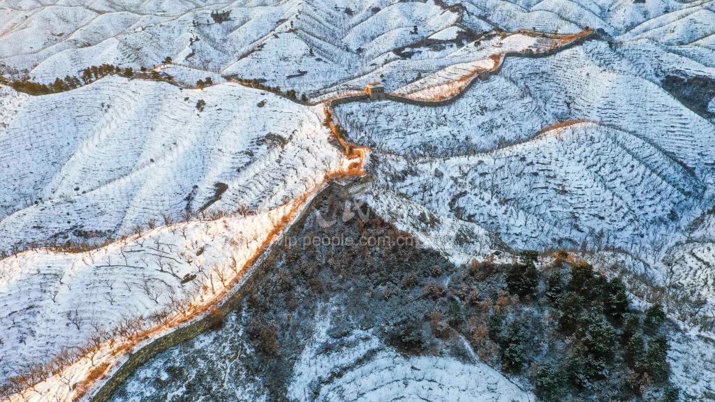 2020年11月22日清晨,雪后初霁,位于河北省遵化市境内的古长城银装素裹,美景如画。