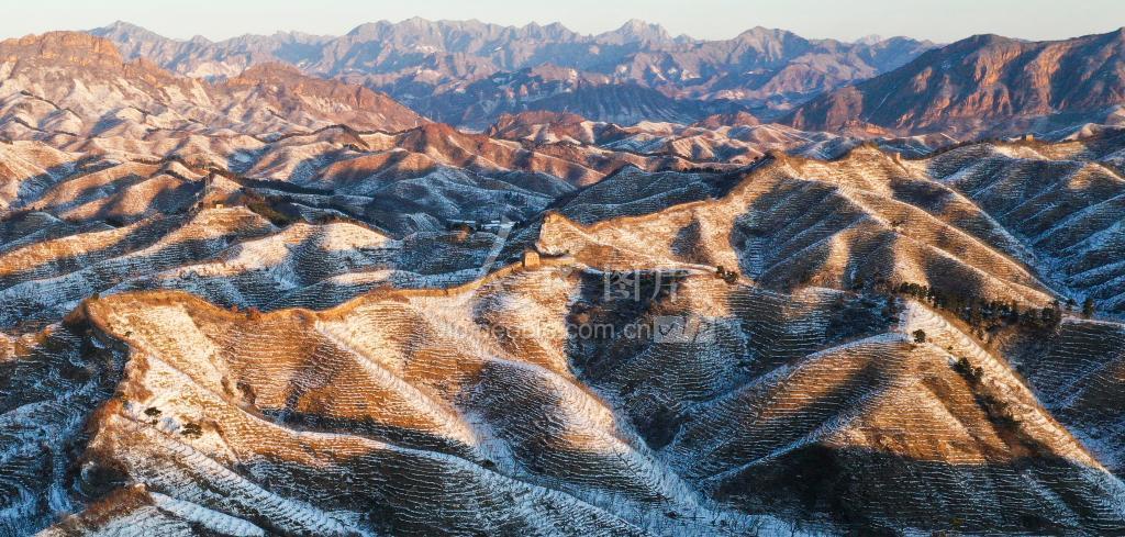 2020年11月22日清晨,雪后初霁,位于河北省遵化市境内的古长城银装素裹,美景如画。