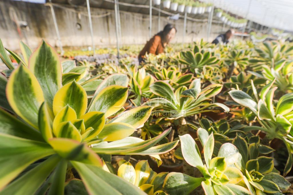 2020年11月22日,河北省遵化市汤泉满族乡关山口村农民在大棚管护多肉植物。