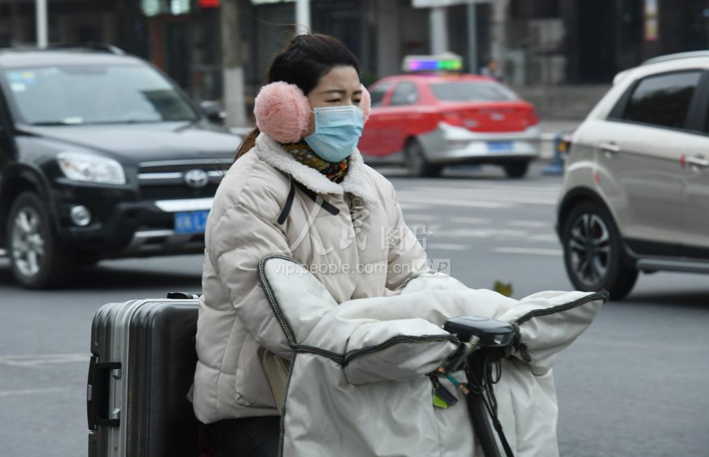 2020年11月22日,安徽省阜阳市,市民“全副武装”在湿冷天气中出行。