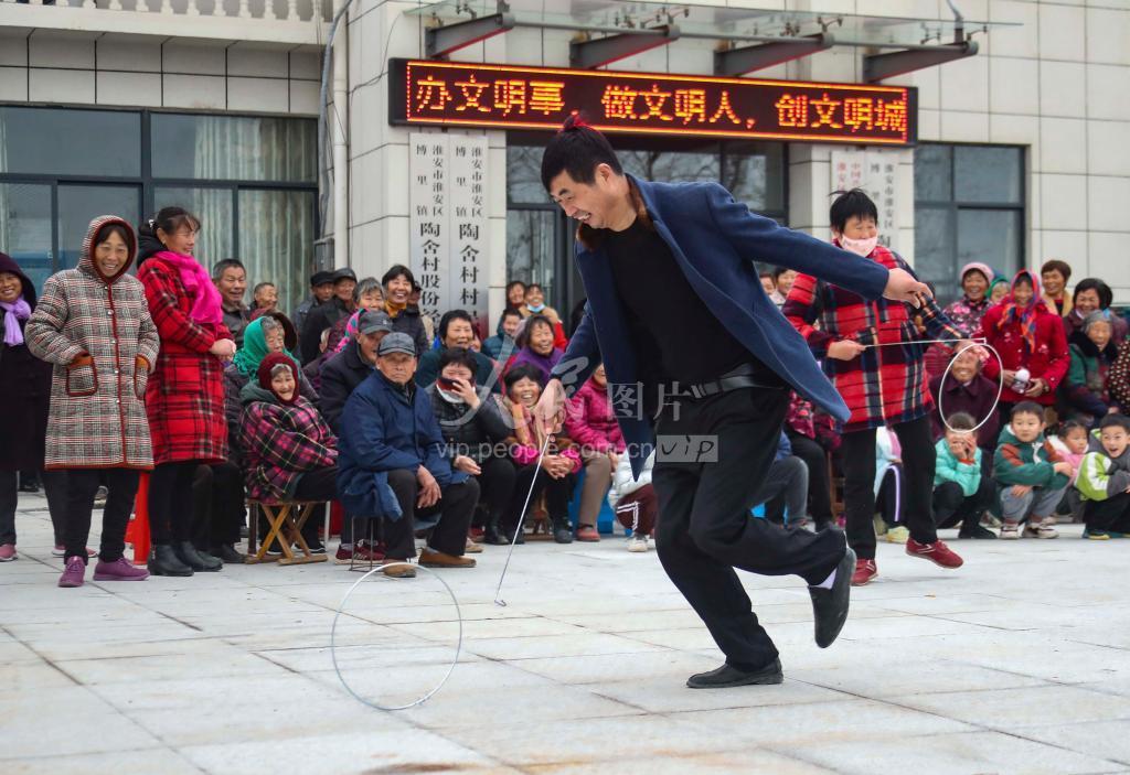 2020年11月22日,江苏淮安市淮安区博里镇陶舍村组织村民参加拔河、跳绳等传统体育运动,享受运动带来的快乐。