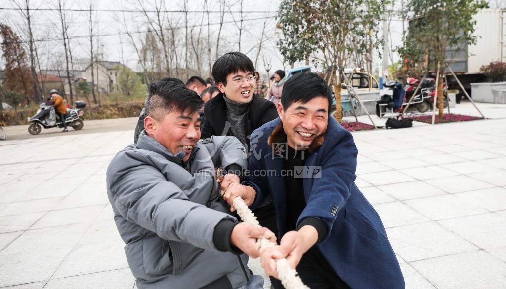 2020年11月22日,江苏淮安市淮安区博里镇陶舍村组织村民参加拔河、跳绳等传统体育运动,享受运动带来的快乐。