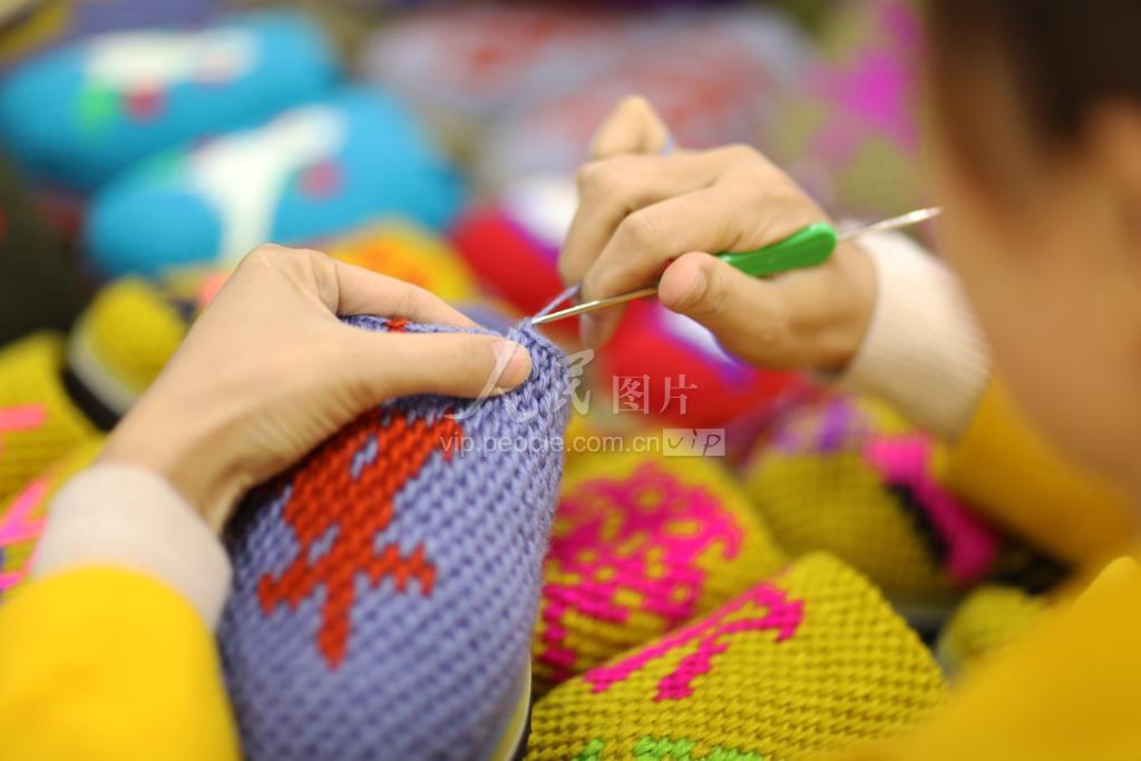 2020年11月22日,在贵州省赤水市长期镇康桥社区,一名女青年在展示钩织的产品。 近年来,贵州省赤水市长期镇在巩固脱贫攻坚成果中,实施“党建引领+巧手脱贫”工程,免费对易地扶贫搬迁留守妇女、困难群众进行手工钩织、刺绣培训,钩织的鞋袜、衣帽、茶具套等成品进行“线上+线下”销售,带动百余名易地搬迁群众在家门口就业增收脱贫。