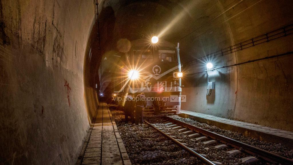 2020年11月21日,铁路建设者在金台铁路台州市仙居县白塔镇岙里段优化铁轨作业。