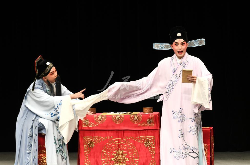 2020年11月22日晚,南京,江苏省昆剧院的演员们在新编折子戏《世说新语》演出中。