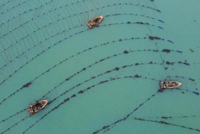 海带夹苗类似于农作物的播种作业,每年11月至12月是海带“播种”期。2020年11月23日,在山东荣成爱伦湾一处海带养殖区和海带夹苗车间内一片繁忙,养殖工人们抓紧时间进行海带夹苗、放苗、挂苗作业。山东荣成是全国最大的海带产地,养殖面积近十五万亩,养殖面积和产量居全国第一,年均出产海带占全省总产量的八成、全国的四成以上。
